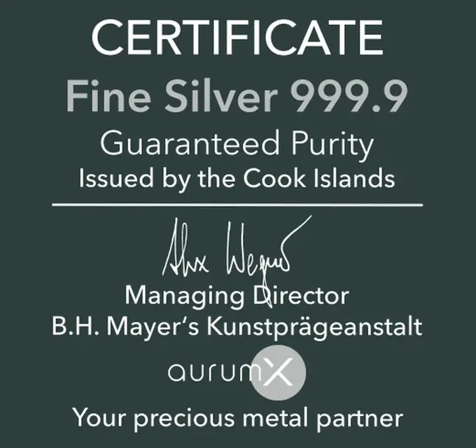 Die 1 Unze Silbermünze aus 999,9 Silber steht für Feinsilber in seiner reinsten Form. Geprägt von der renommierten B. H. Mayer’s Kunstprägeanstalt in Deutschland. Jede Münze wird einzeln mit integriertem Zertifikat verpackt.