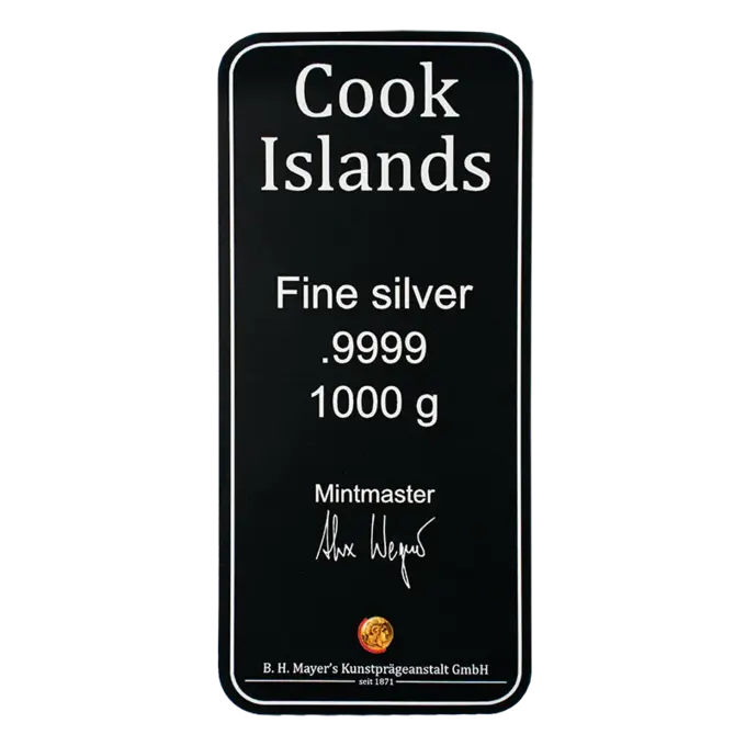 Alle unsere Gold- und Silberprodukte, einschließlich unserer geprägten Barren, sind offizielle Münzen mit Ausgabeland Cook Islands.