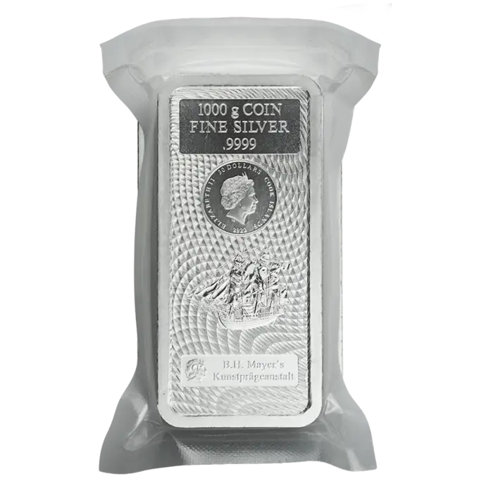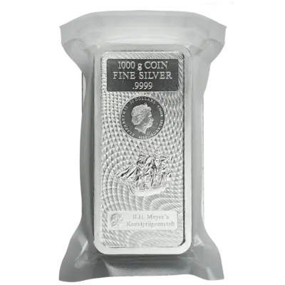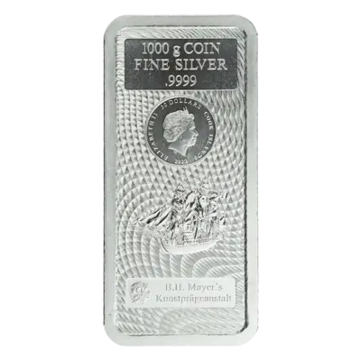 Der 1000g Silberbarren aus 999,9 Silber steht für Feinsilber in seiner reinsten Form. Geprägt von der renommierten B. H. Mayer’s Kunstprägeanstalt in Deutschland. Jeder Barren ist eingeschweißt und mit integriertem Zertifikat versehen.