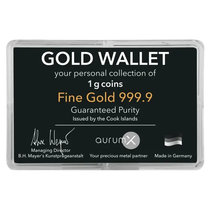 Das Gold Wallet Starter-Set ist der Einstieg in ein neues, flexibel erweiterbares Goldkonzept. Dabei werden einzelne Münzen Schritt für Schritt in einer wiederverschließbaren Sammel- und Aufbewahrungsbox gesammelt und ergänzt.